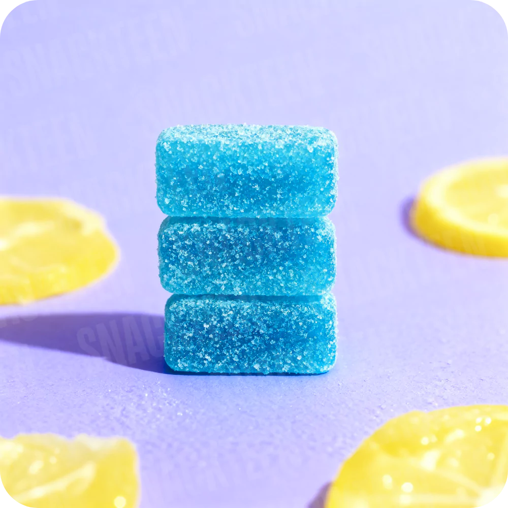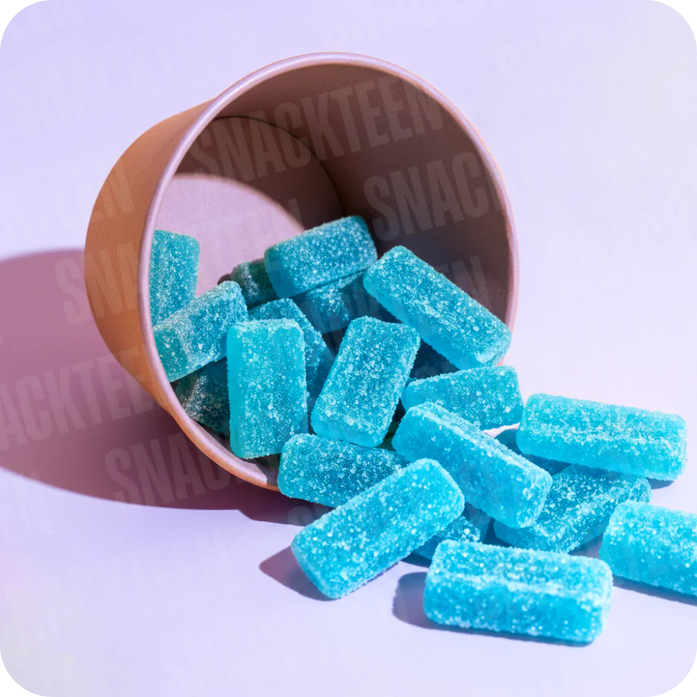 Az Extra Savanyú Áfonya szelet egy intenzíven savanyú, áfonya ízű gumicukor, amely frissítő és erőteljes ízélményt nyújt.
