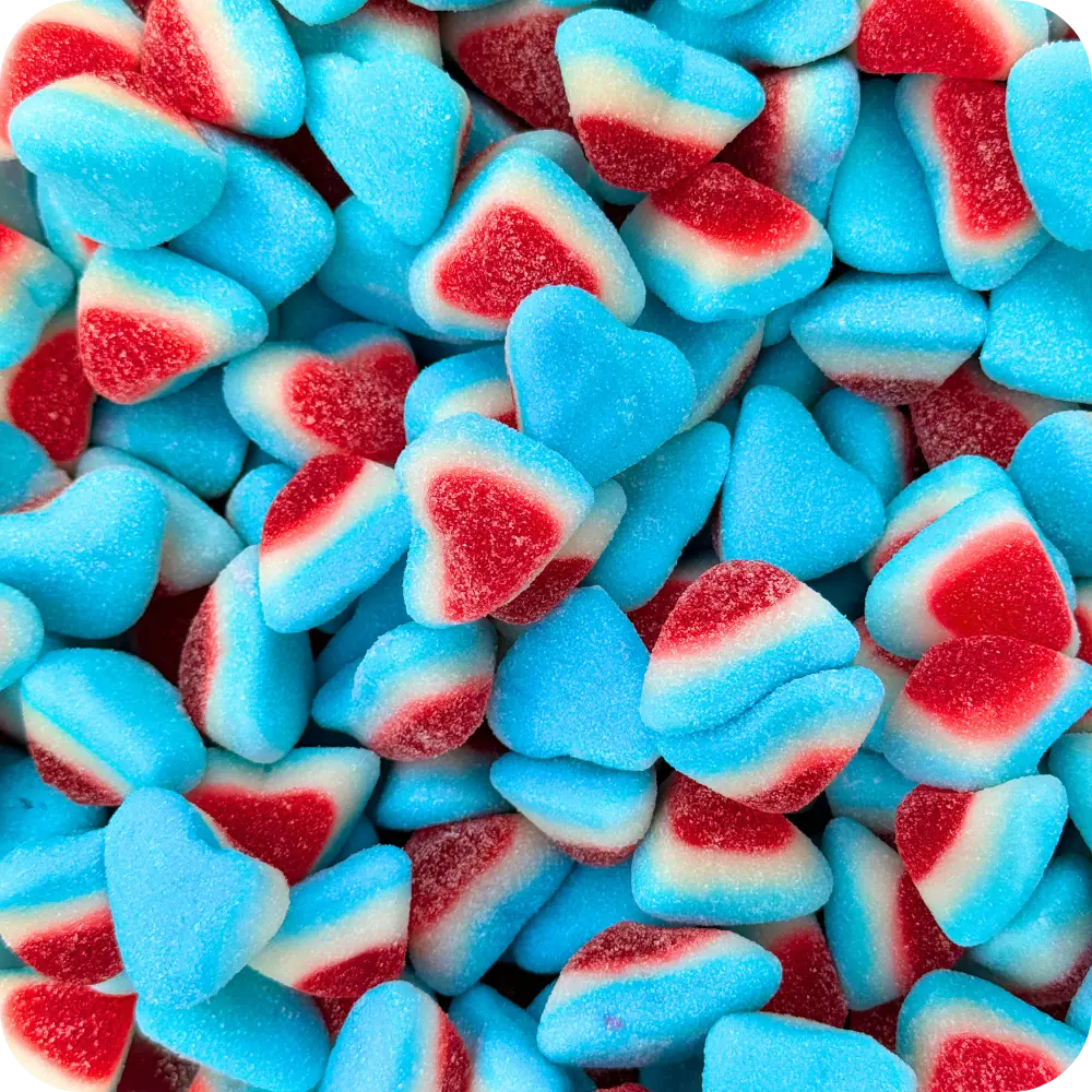 Triplaszív gumicukor, vegyes gyümölcs ízű, három rétegben egyesülő ízekkel – tökéletes édesség, ami minden falatban friss és gyümölcsös élményt nyújt!